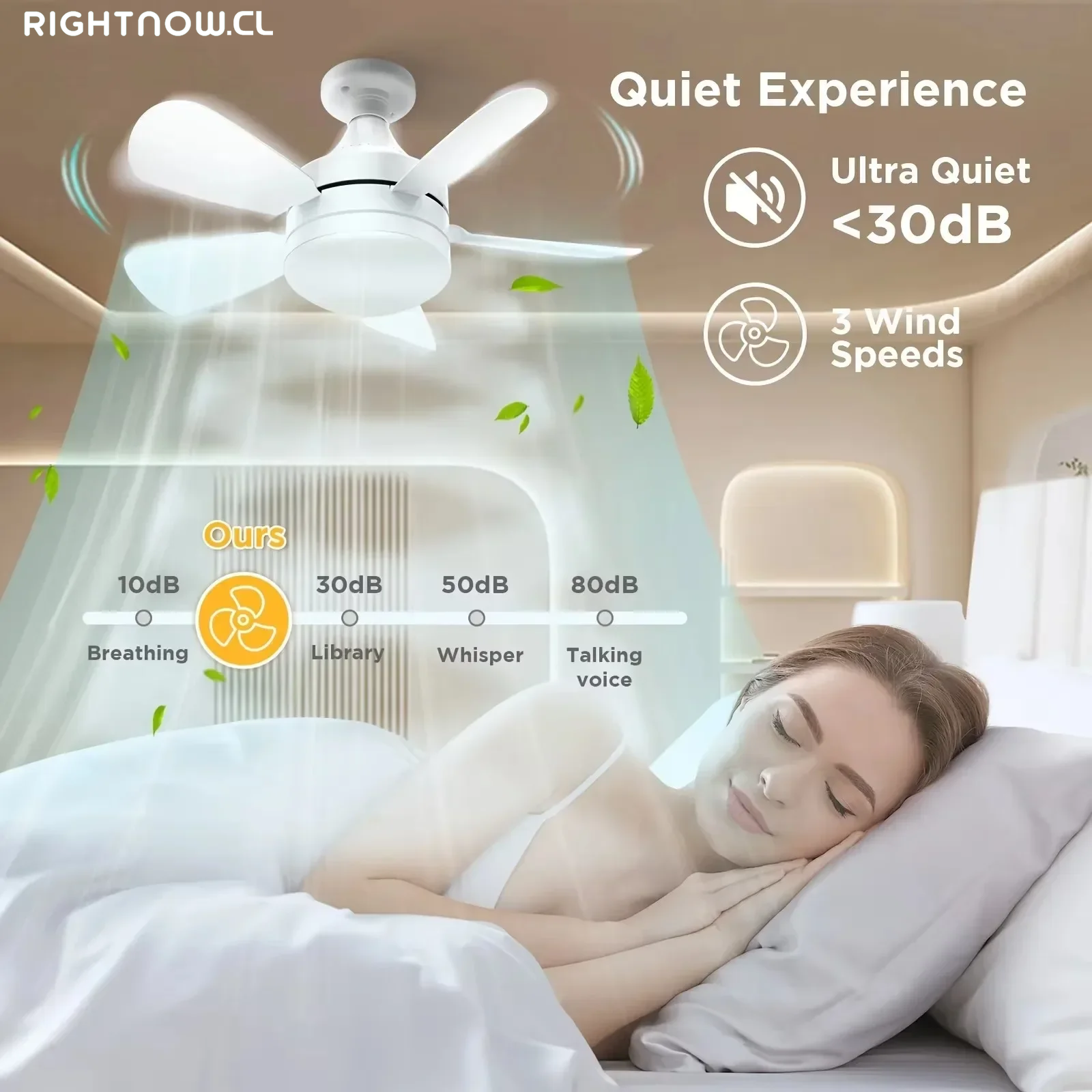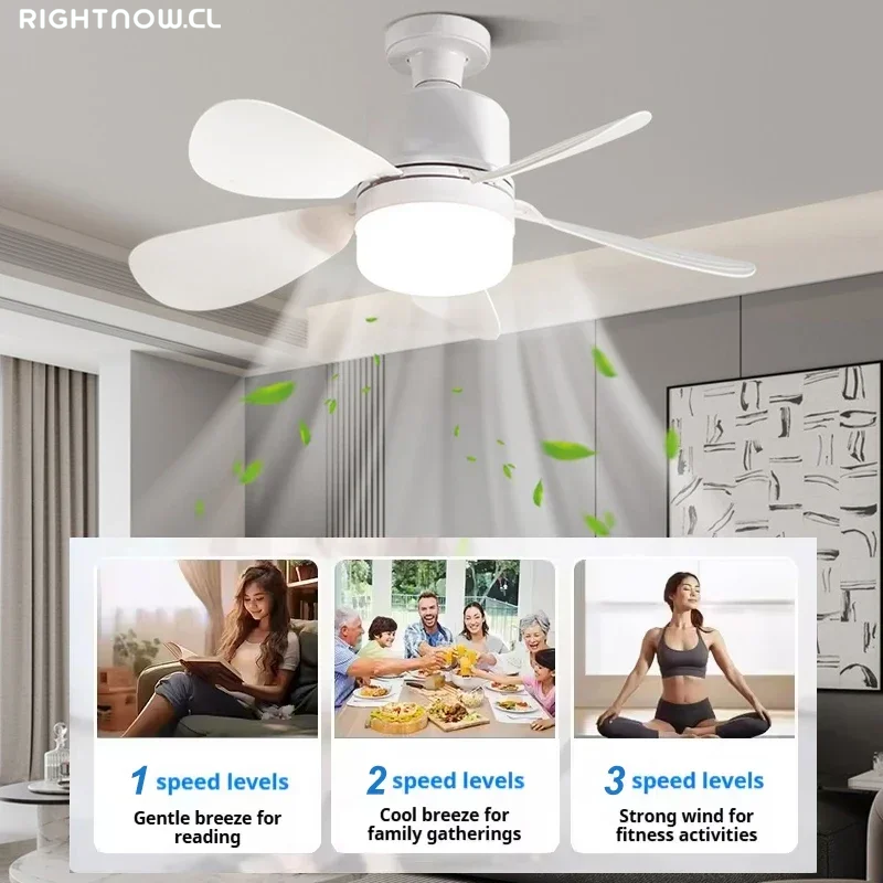Diseño 2 en 1: Este ventilador con luz de casquillo E27 es ideal para ahorrar espacio, combinando la funcionalidad de un ventilador y una lámpara en un solo dispositivo.