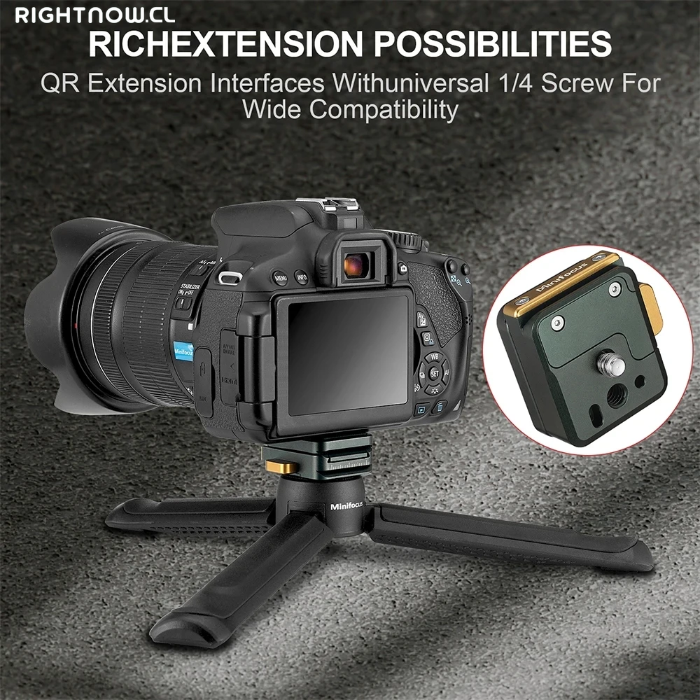 Amplia compatibilidad: La base es compatible con trípodes, rótulas, estabilizadores, sliders y más. El tornillo superior de 1/4" es compatible con la mayoría de las cámaras y accesorios del mercado.