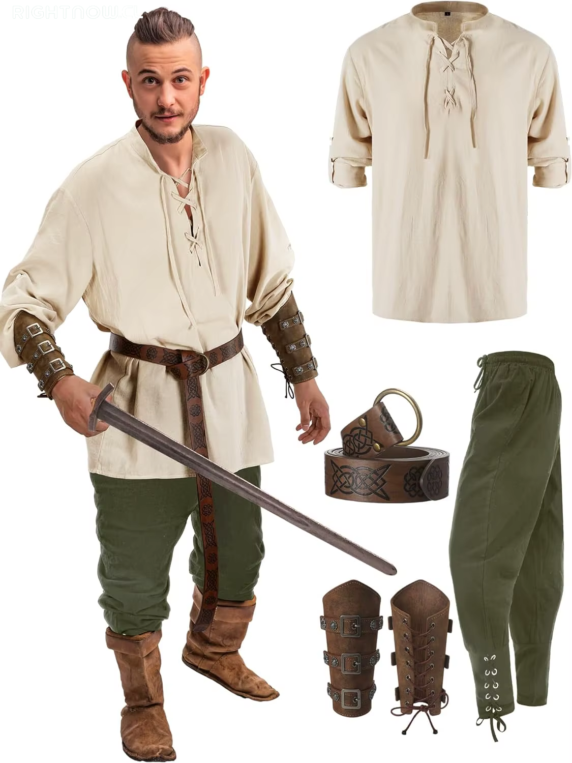 Juego de disfraz medieval: el juego incluye 1 camisa de manga larga de encaje de estilo retro de algodón para... Leer más...