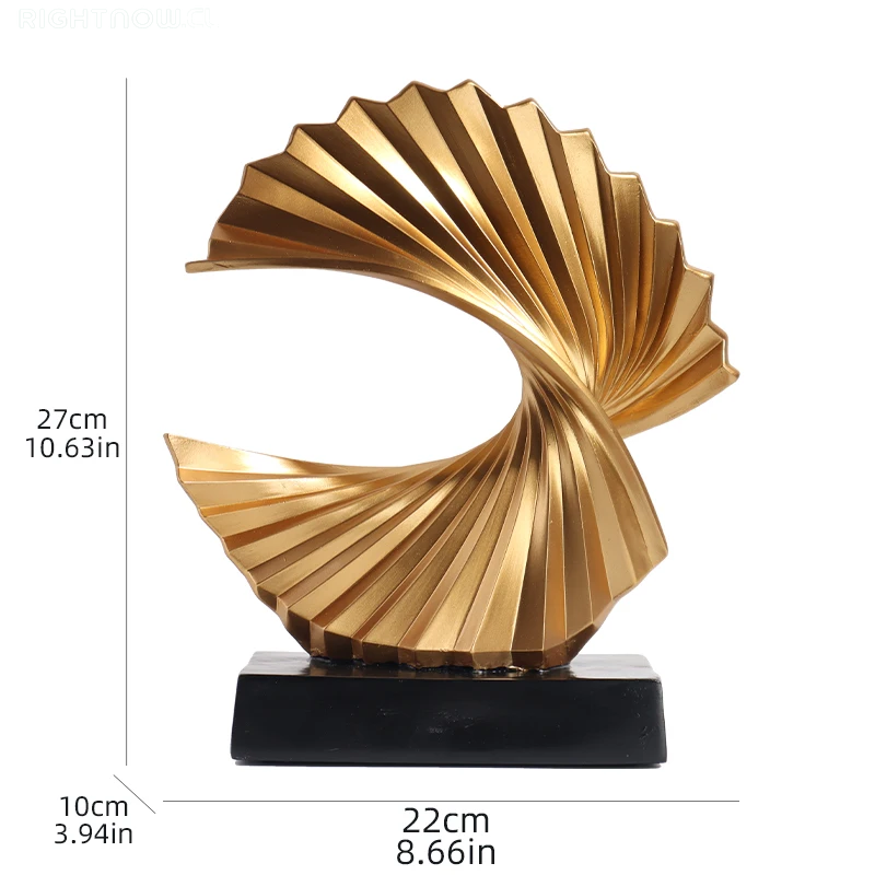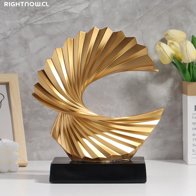 Suba el nivel de la decoración de su hogar con esta sofisticada escultura de ola, una impresionante pieza de arte abstracto que combina un diseño elegante con una belleza funcional. Esta escultura, meticulosamente elaborada, presenta una dinámica forma de onda con un brillante acabado dorado, montada sobre una elegante base negra.
