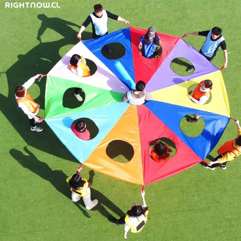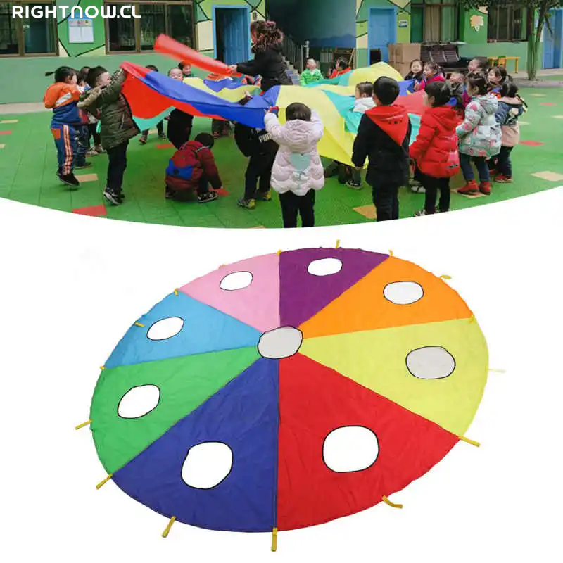 Este paracaídas de arcoíris, ideal para el juego "Pega al Topo", es la actividad perfecta para fomentar la cooperación y el desarrollo de habilidades en los niños. Diseñado para espacios abiertos, este juego es ideal para jardines infantiles, parques, o incluso para jugar en casa con amigos y familia.