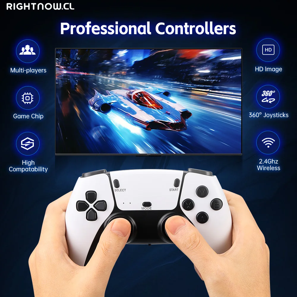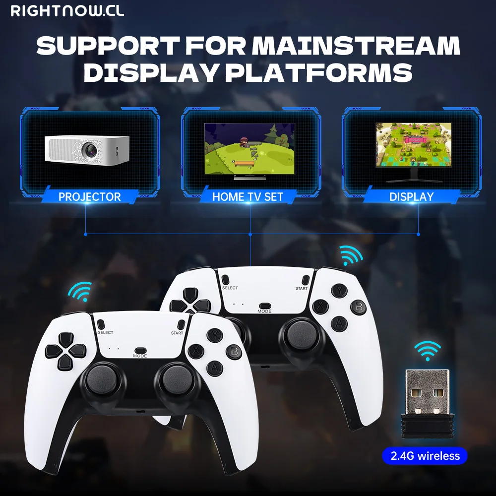 Esta consola de juegos retrocuenta con un control inalámbrico de 2,4G, tiene funciones completas, textura más avanzada y cómoda, admite conexión a 4 controladores (necesita el concentrador USB extendido que no está incluido).Puedes disfrutar de juegos con un amigo o familiar sin estar atado por cables.