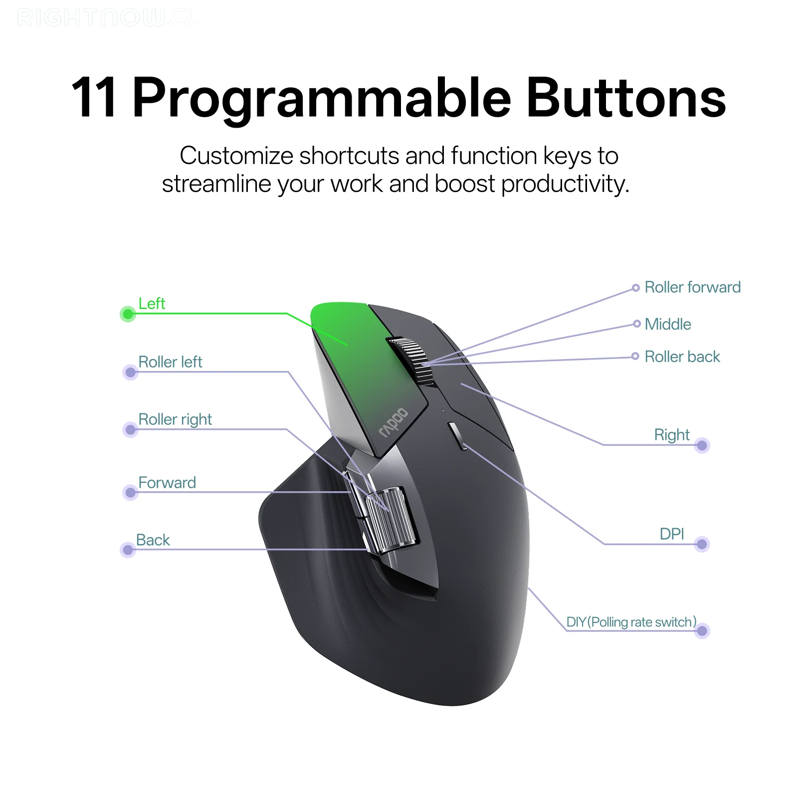 11 botones programables con memoria integrada: optimiza tu flujo de trabajo o sesiones de juego con accesos directos, teclas multimedia y macros. La memoria integrada puede almacenar todas sus configuraciones en el mouse, evitando los inconvenientes de la reconfiguración después del reinicio, así como reduciendo la ocupación de CPU y hardware de ejecutar un controlador de mouse todo el tiempo.
