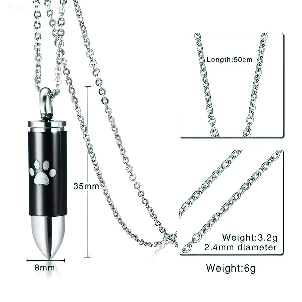 Fabricado en acero de titanio de alta calidad, este collar no solo es hermoso, sino que también es resistente. Su diseño a prueba de fugas lo convierte en el contenedor perfecto y confiable para guardar las cenizas de tu mascota. Puedes usarlo a diario para recordar a tu querido compañero. Es ideal para ti o como un regalo significativo para alguien que ha perdido a su mascota.