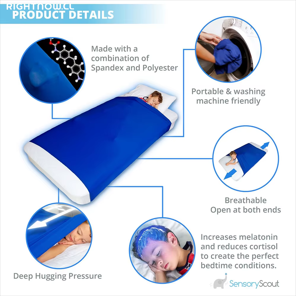 【Promueve la Relajación】 ¡Proporcione a su hijo un ambiente de sueño seguro y relajante!Esta sábana sensorial abraza suavemente a su hijo y ofrece la cantidad justa de compresión para satisfacer sus necesidades.