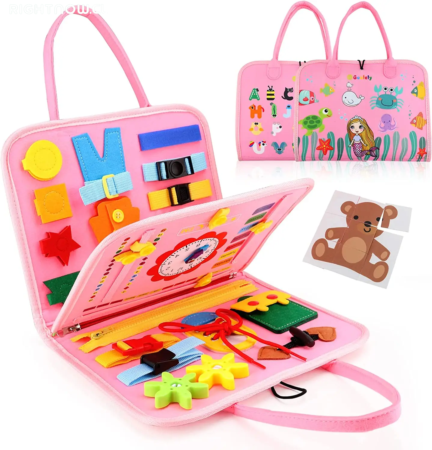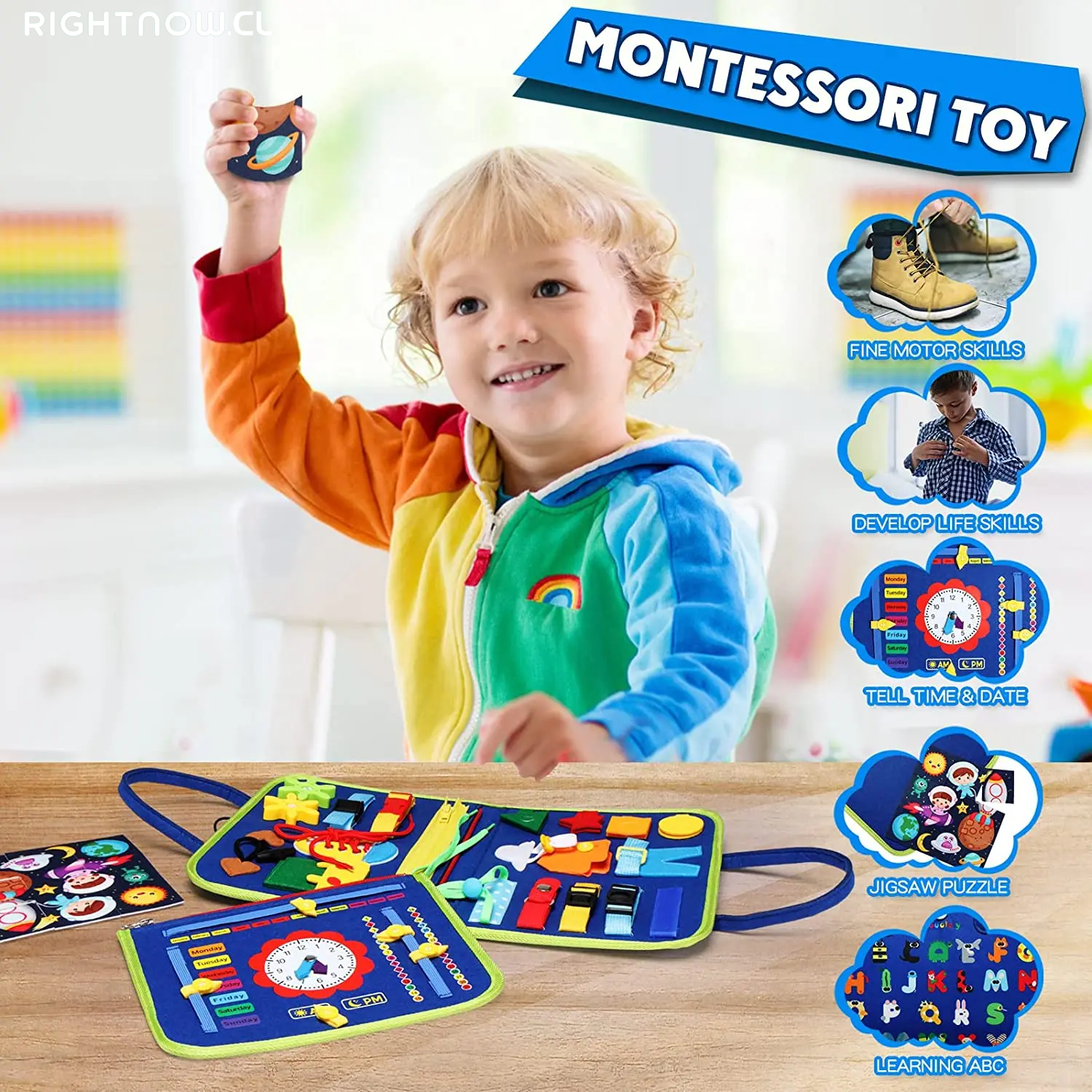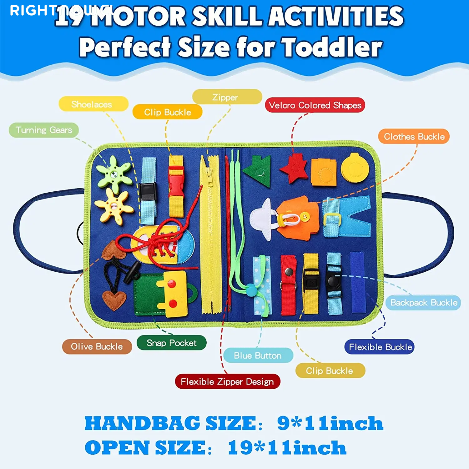 Fomenta la autonomía y el juego independiente: Nuestro tablero de actividades Montessori está diseñado para mantener a tus hijos entretenidos y ocupados. Es un juguete sensorial ideal que motiva el juego individual mientras ayuda a los niños a desarrollar habilidades básicas como vestirse y atarse los zapatos. El tablero cuenta con 16 elementos (cordones, engranajes, un reloj, cierres, hebillas, botones y más) con distintos niveles de desafío, para que tu hijo no pierda la atención tan fácilmente.
