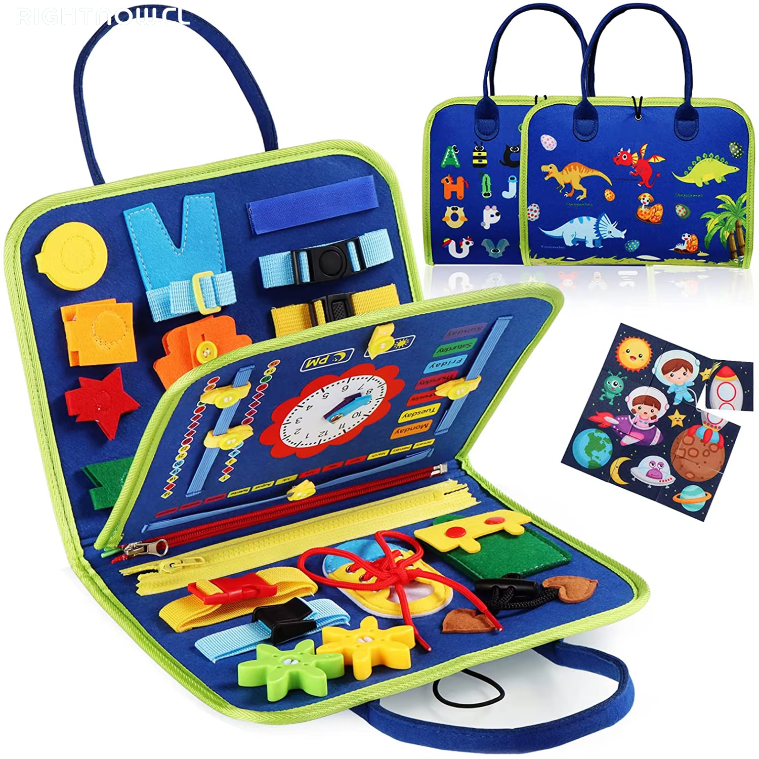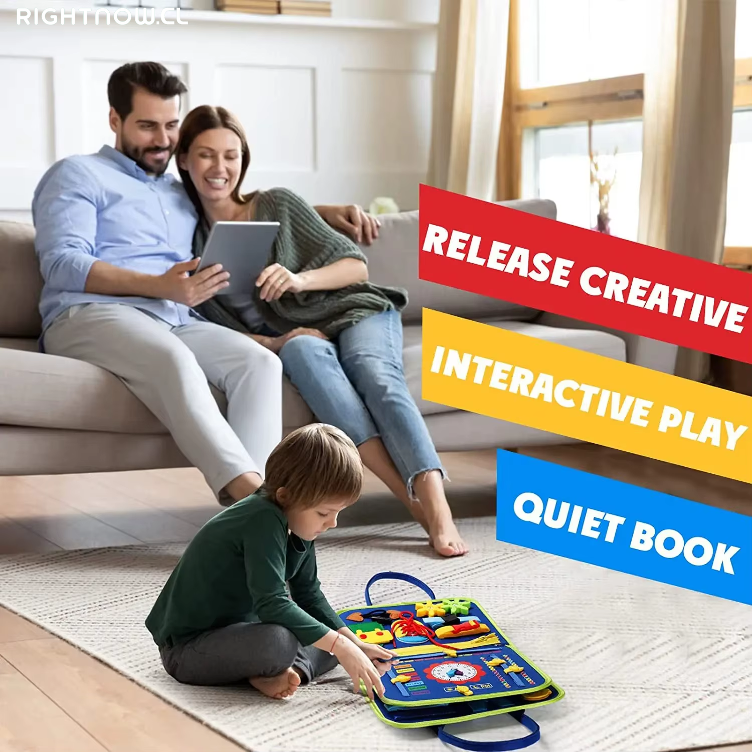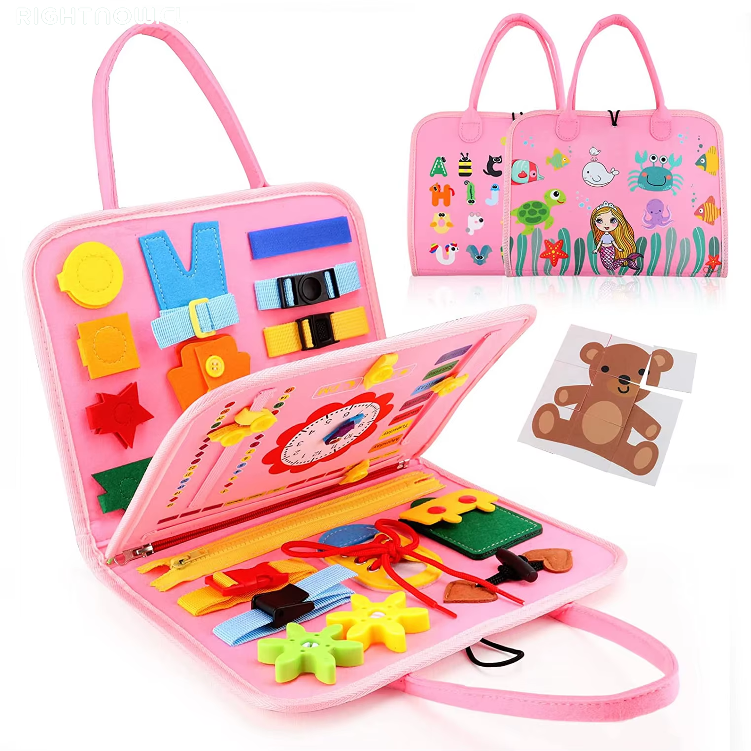 Fomenta la autonomía y el juego independiente: Nuestro tablero de actividades Montessori está diseñado para mantener a tus hijos entretenidos y ocupados. Es un juguete sensorial ideal que motiva el juego individual mientras ayuda a los niños a desarrollar habilidades básicas como vestirse y atarse los zapatos. El tablero cuenta con 16 elementos (cordones, engranajes, un reloj, cierres, hebillas, botones y más) con distintos niveles de desafío, para que tu hijo no pierda la atención tan fácilmente.