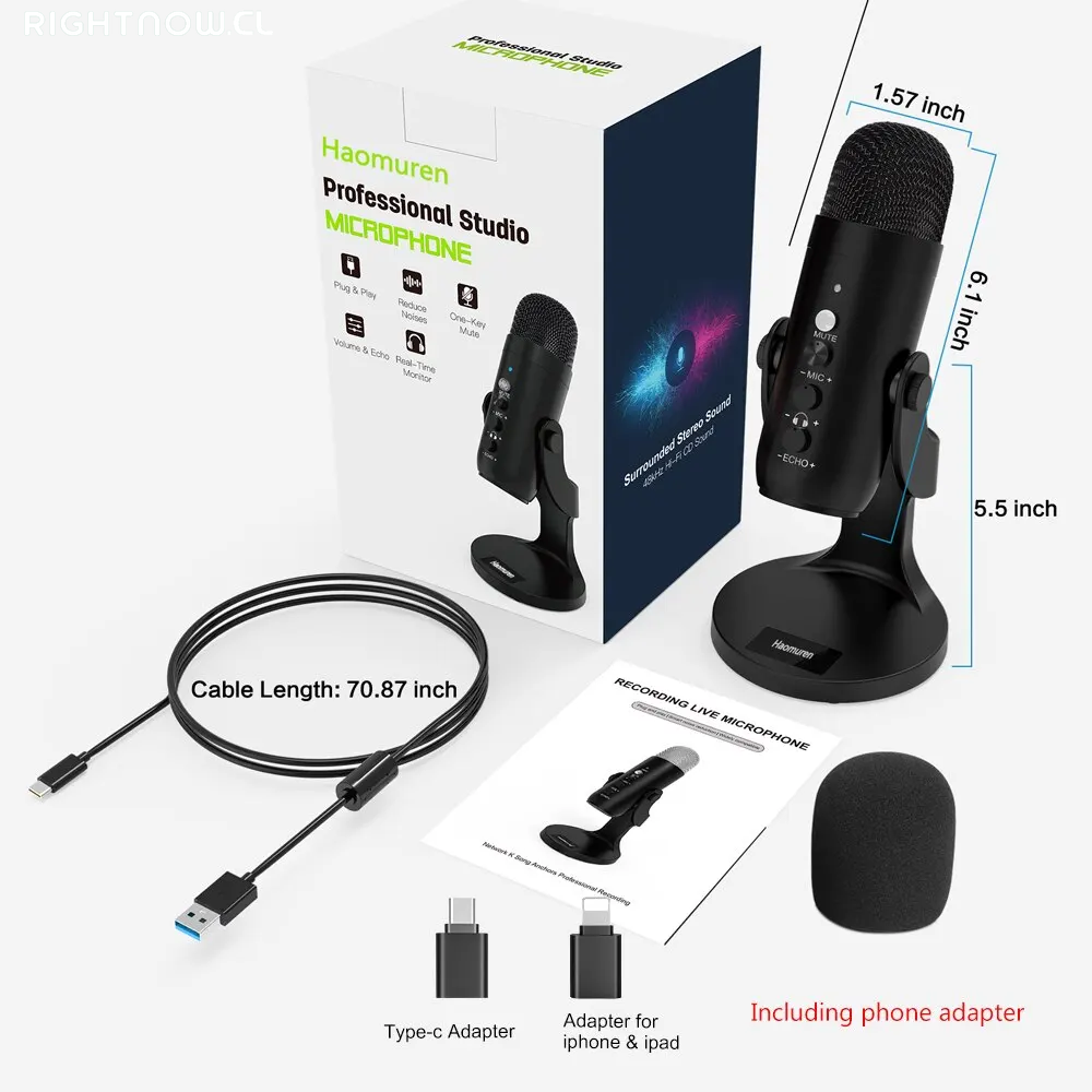 Versatilidad: Incluye un adaptador para teléfono para que puedas grabar o transmitir desde tu smartphone.